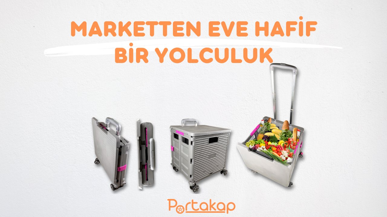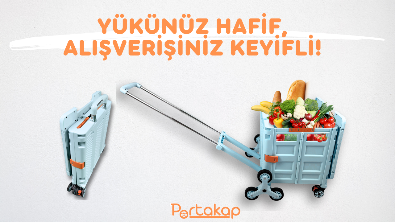 Portakap 4 Tekerlekli, 55 Litre Gri Katlanır Alışveriş Arabası - Hareketli Tutacaklı