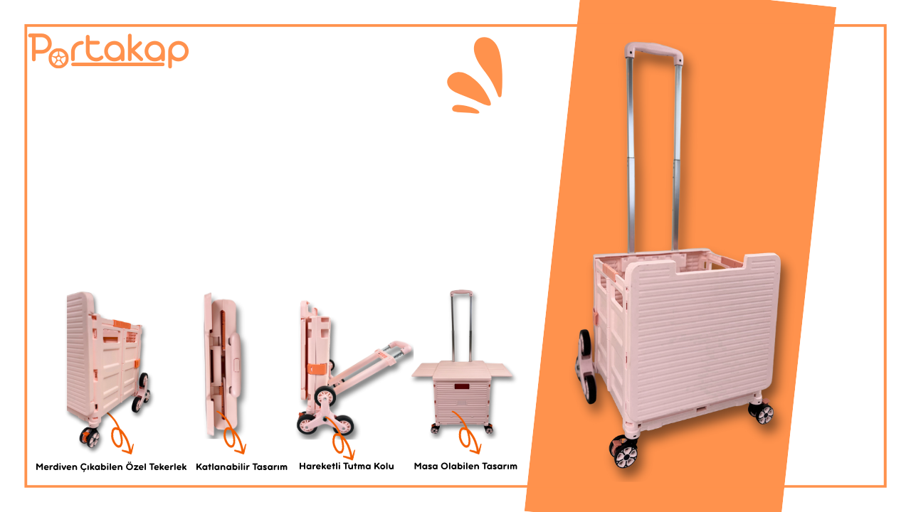 Portakap 8 Tekerlekli, 55 Litre Pembe Katlanır Alışveriş Arabası