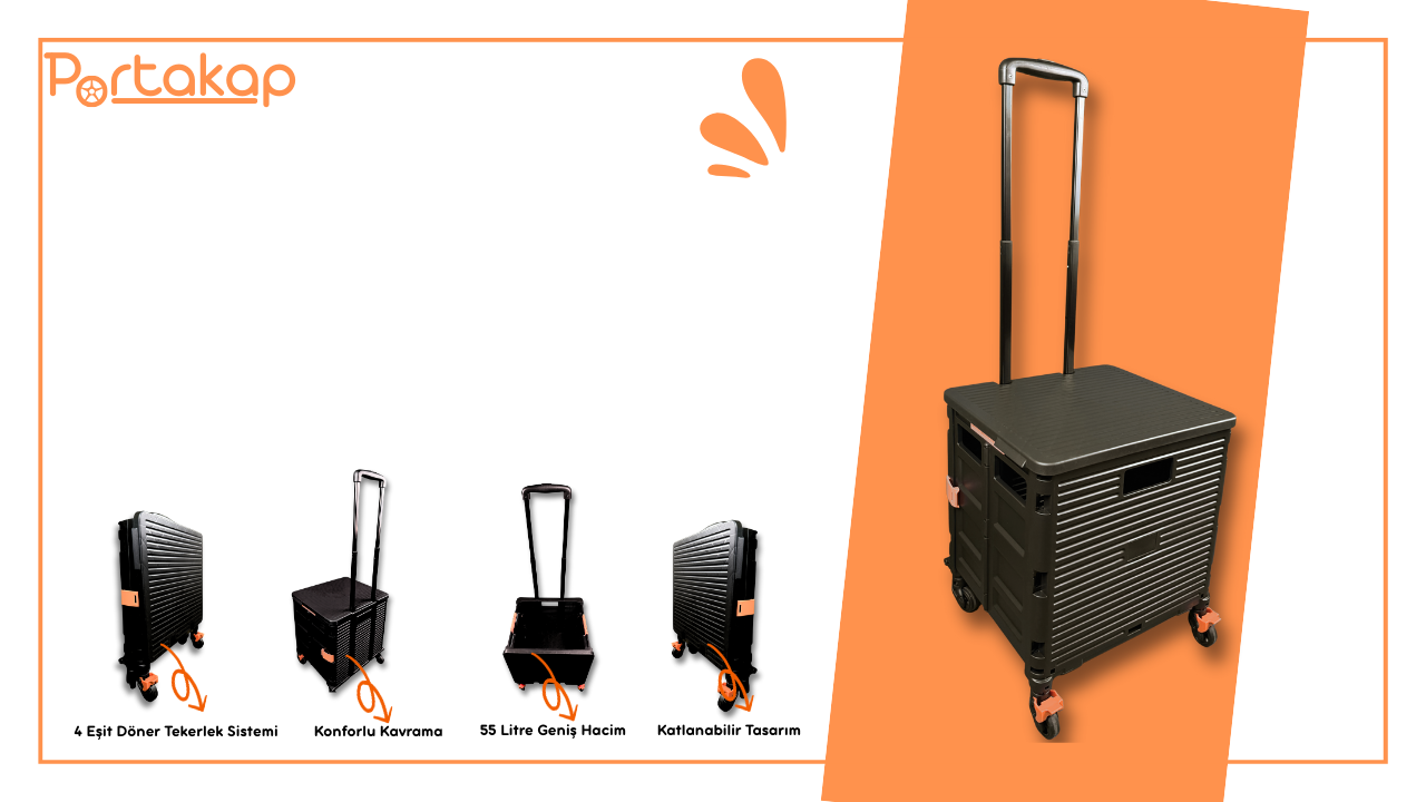 Portakap 4 Tekerlekli, 55 Litre Siyah Katlanır Alışveriş Arabası
