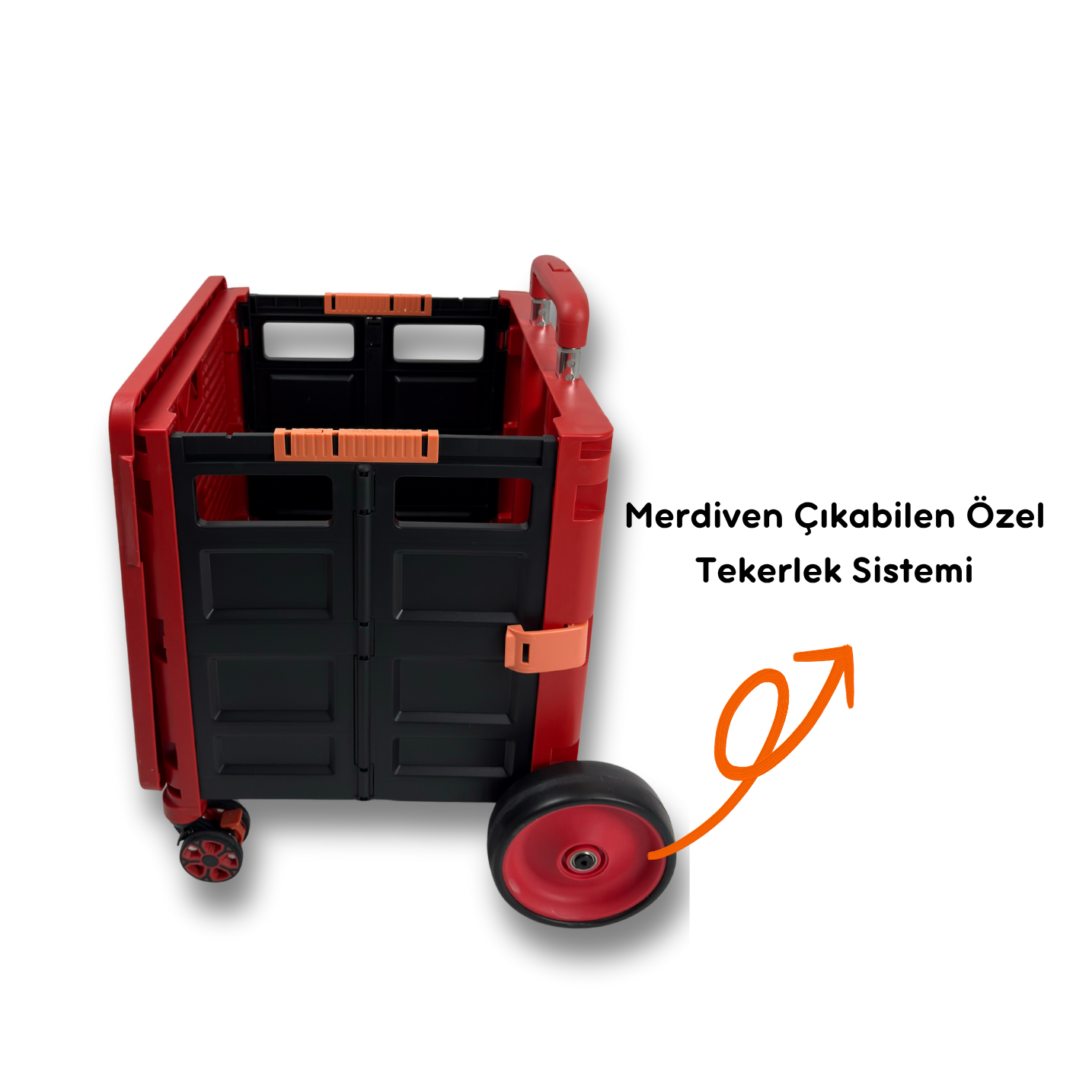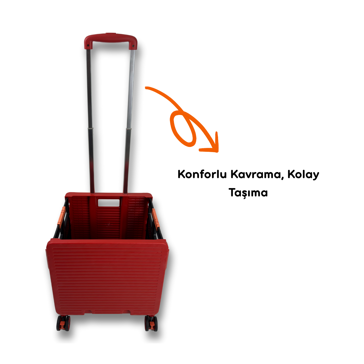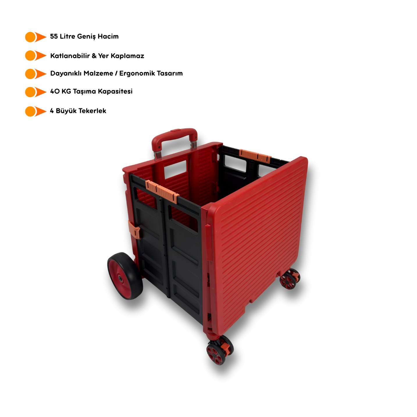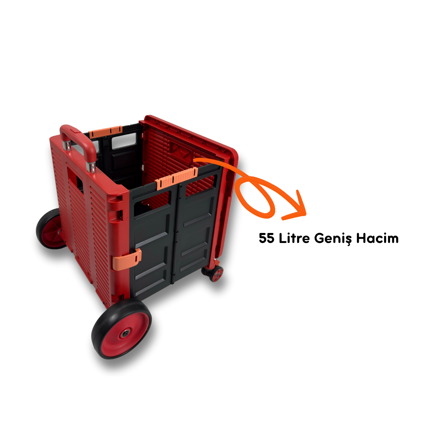 Portakap 4 Büyük Tekerlekli, 55 Litre Kırmızı Katlanır Alışveriş ArabasıPratik, Dayanıklı ve Katlanabilir!