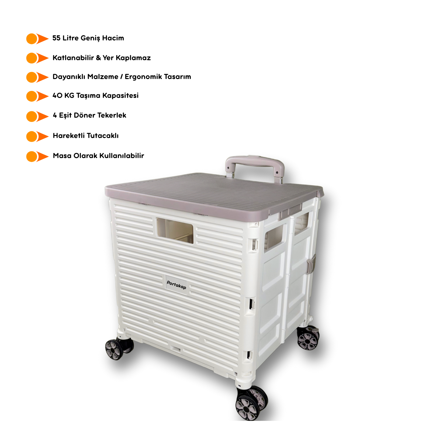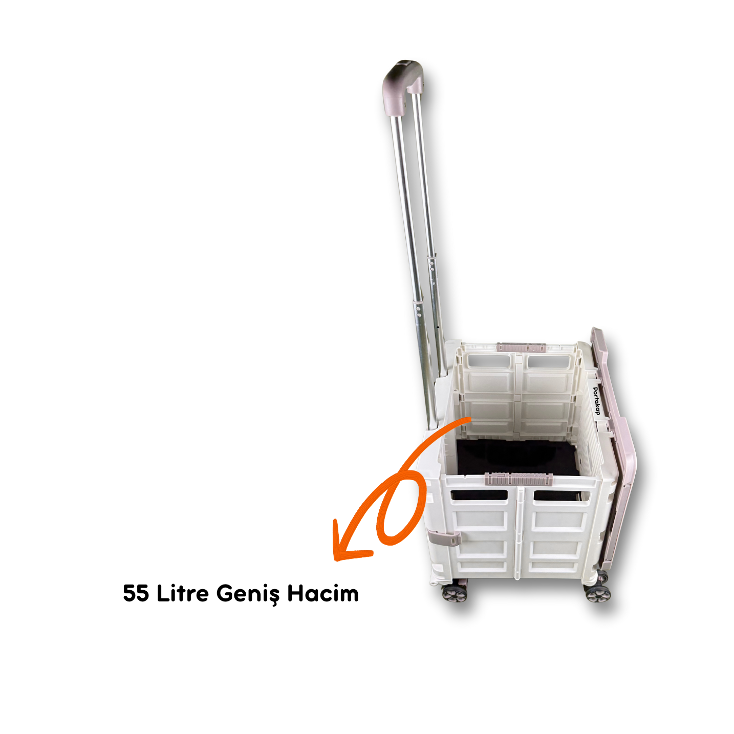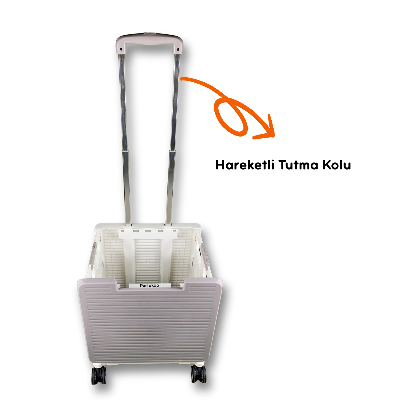 Portakap 4 Tekerlekli, 55 Litre Beyaz ve Kahverengi Katlanır Alışveriş Arabası - Hareketli Tutacaklı