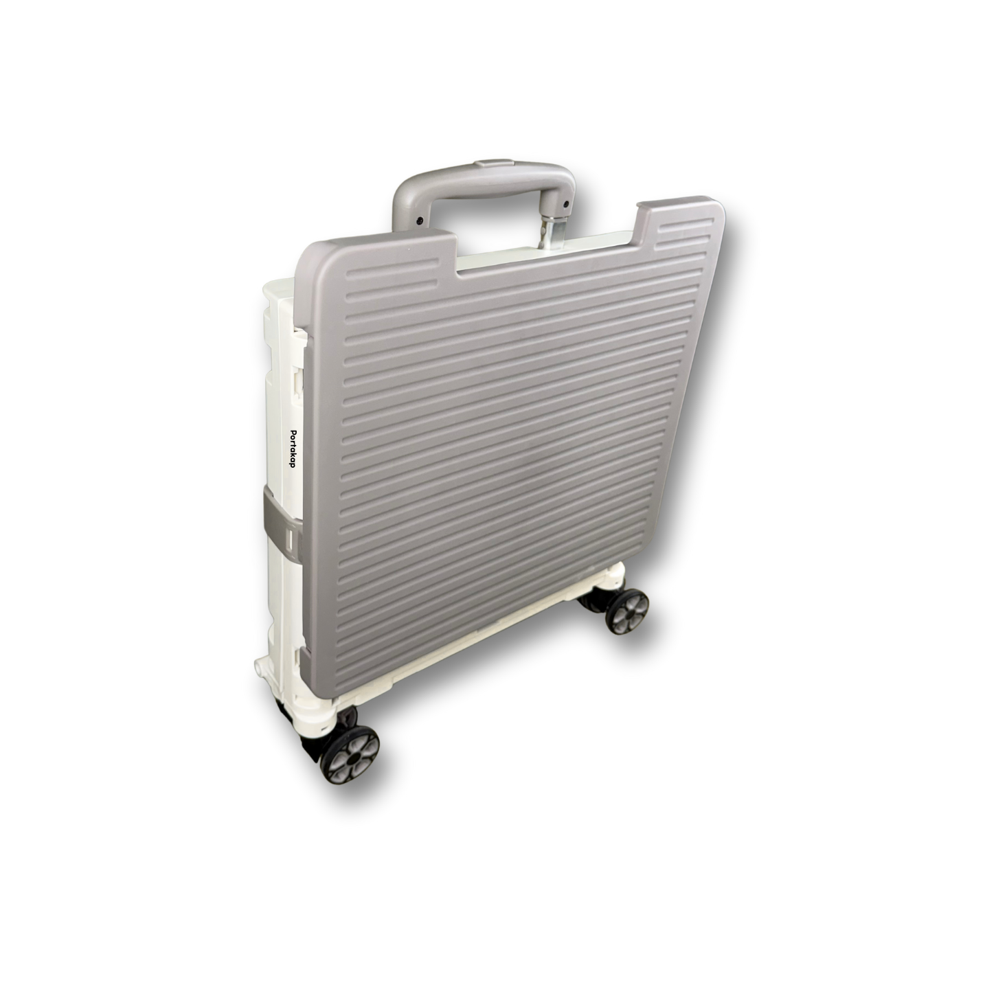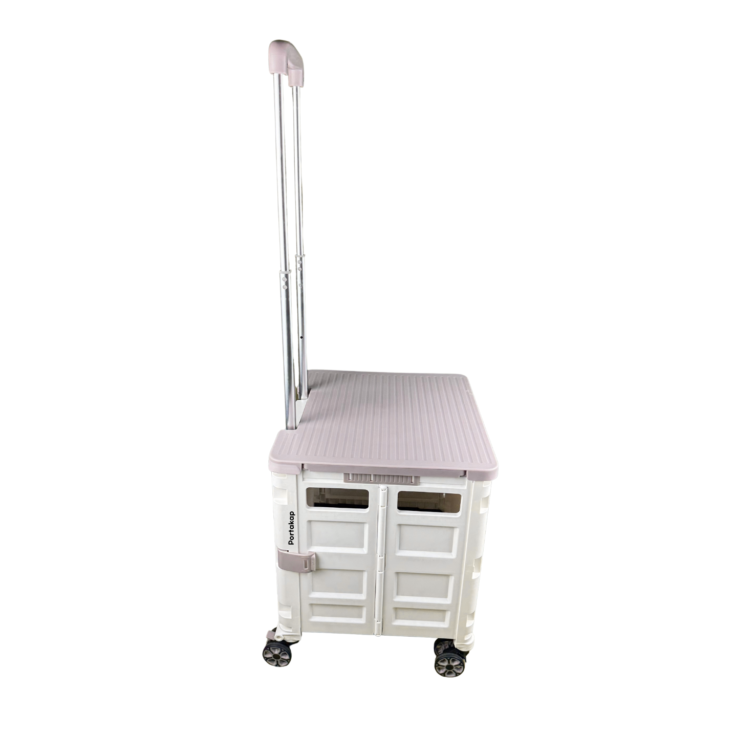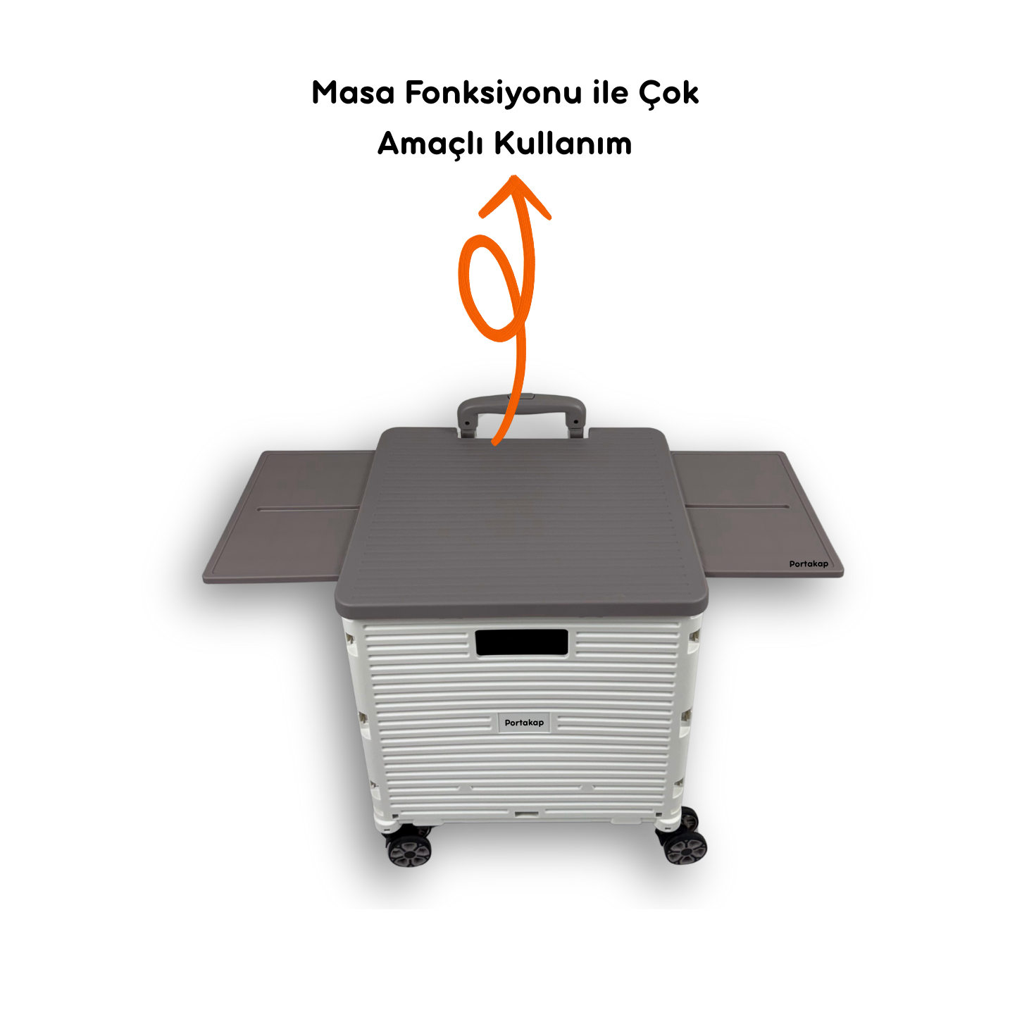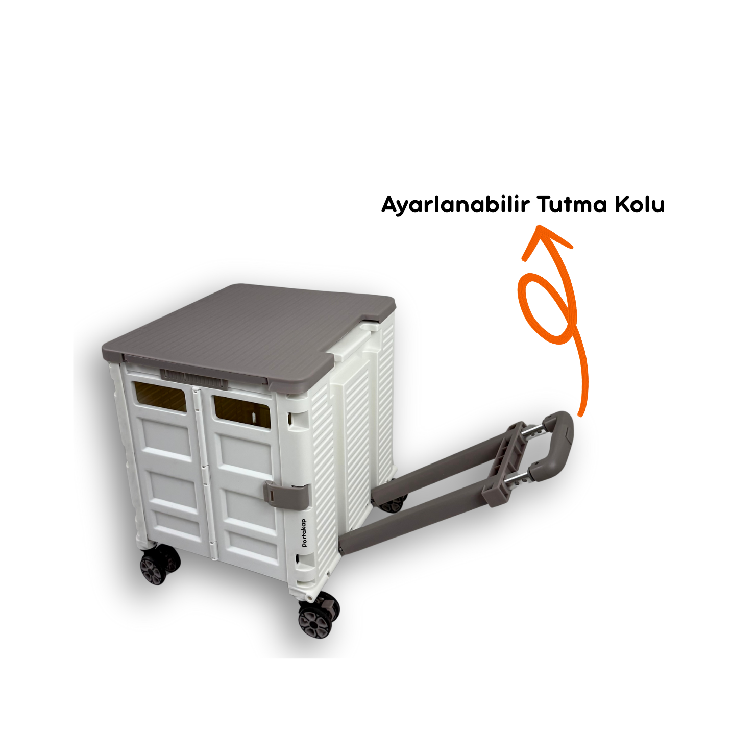 Portakap 4 Tekerlekli, 55 Litre Beyaz ve Kahverengi Katlanır Alışveriş Arabası - Hareketli Tutacaklı