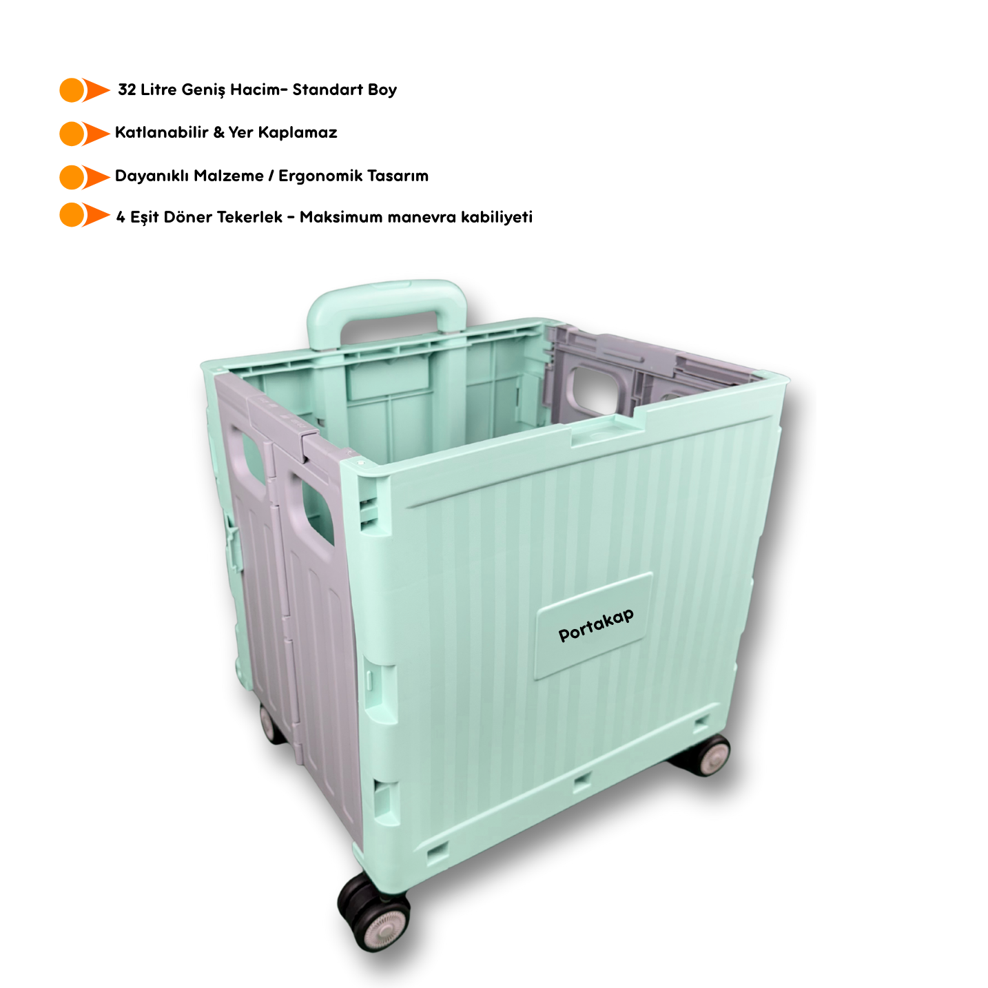 Küçük ama Kullanışlı! Portakap, 32 litrelik kompakt hacmi ve hafif yapısıyla günlük alışverişlerinizi kolaylaştırır. Sabit tutacaklı ve 4 tekerlekli tasarımı sayesinde rahat kullanım sağlar.