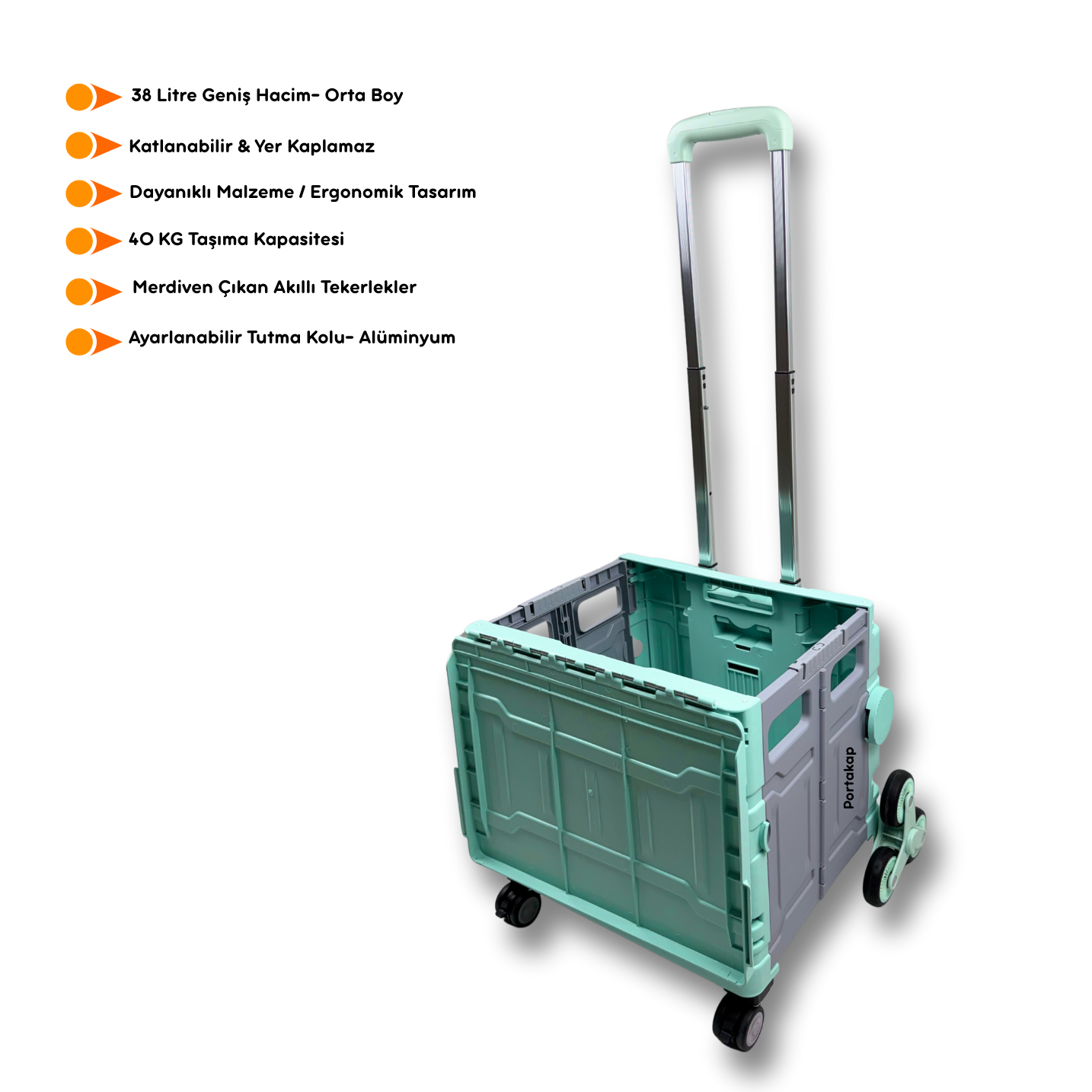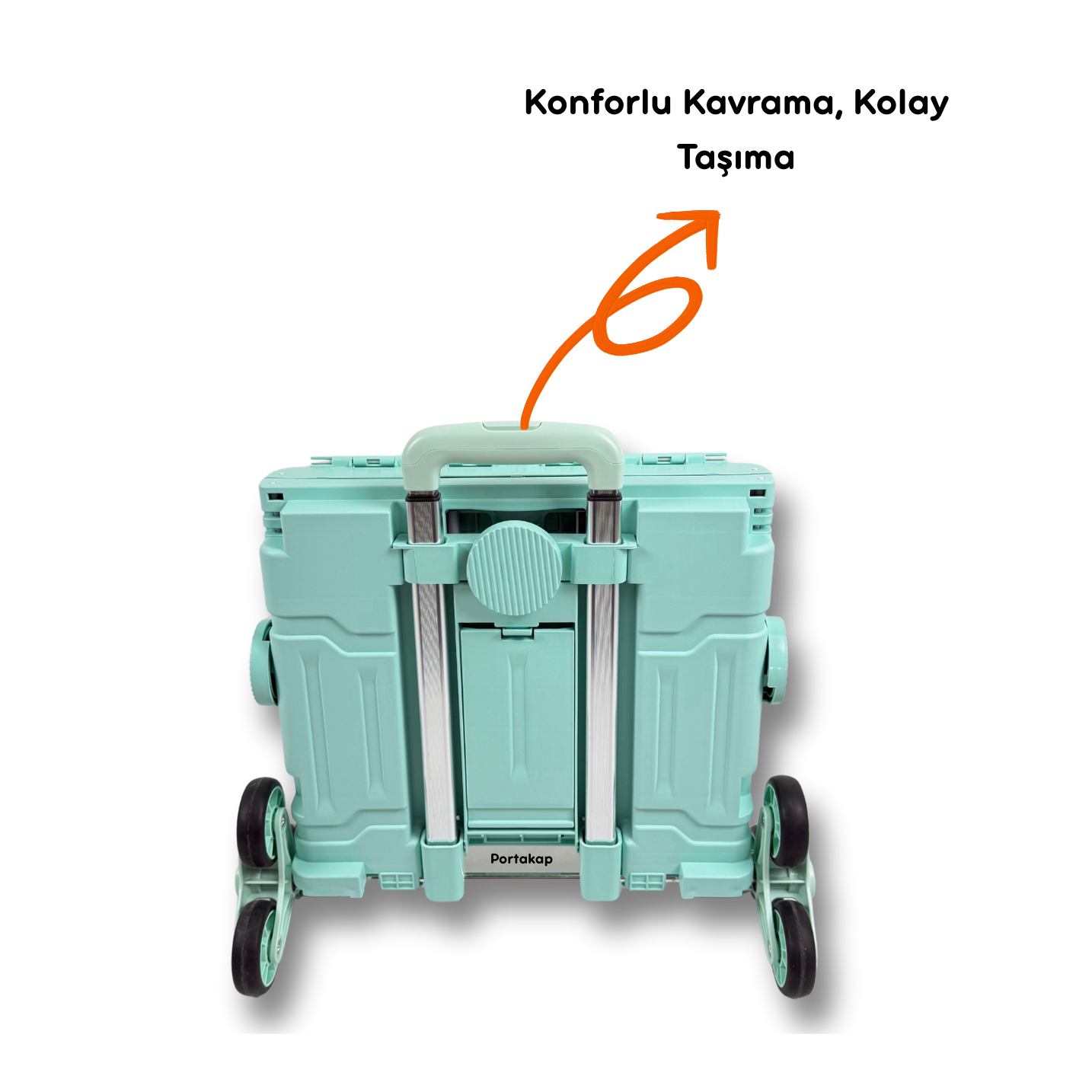 Portakap 8 Tekerlekli Alışveriş Arabası, 38 litrelik ideal hacmi ve hareketli alüminyum tutacağı sayesinde kullanıcıya maksimum konfor sunar. 8 tekerlekli özel tasarımı ile merdiven çıkma ve engebeli yüzeylerde dahi sorunsuz hareket eder. Katlanabilir yapısıyla yer kaplamaz, taşıması ve saklaması kolaydır.