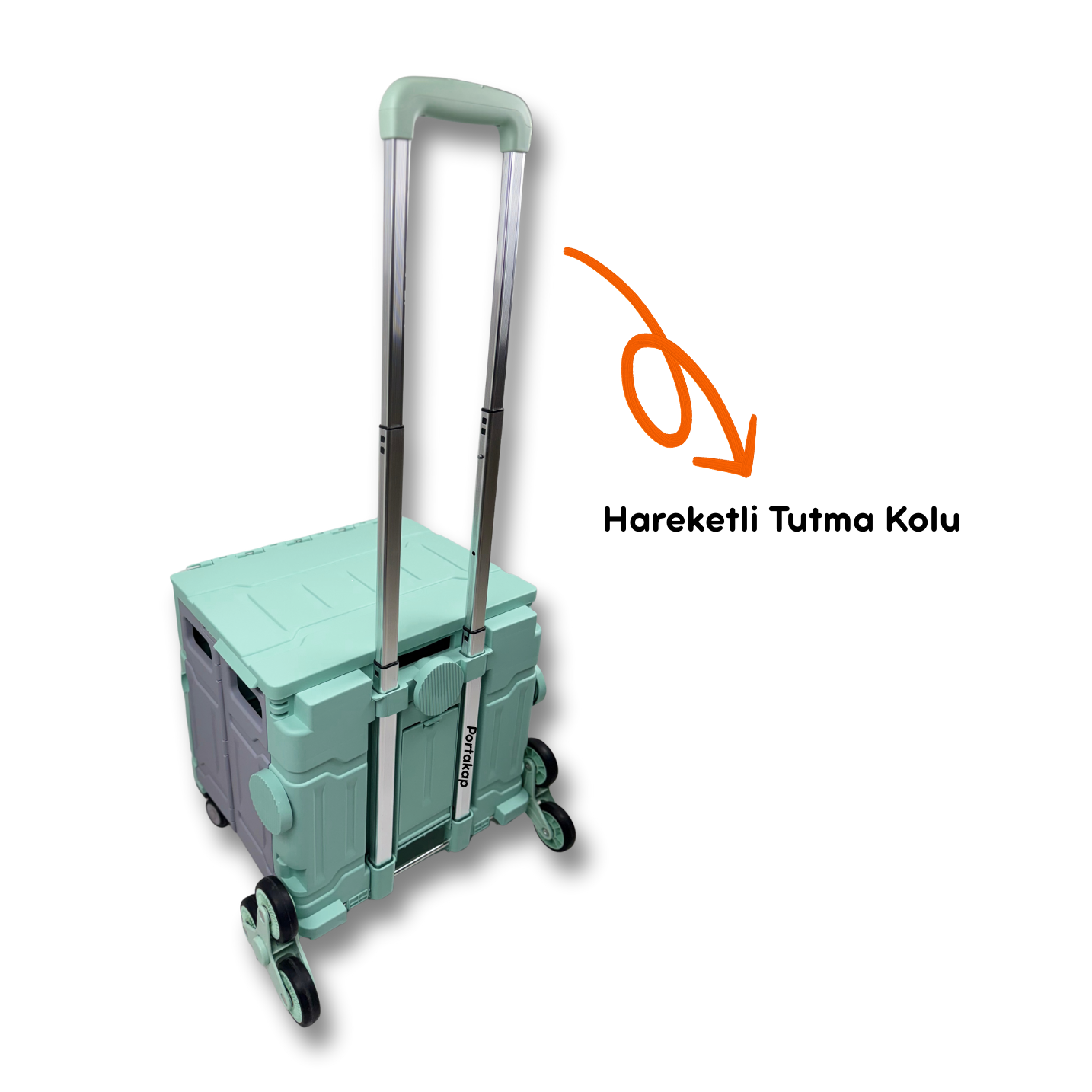 Portakap 8 Tekerlekli Yeşil, 38L Orta Boy Hareketli Alüminyum Tutacaklı Alışveriş Arabası