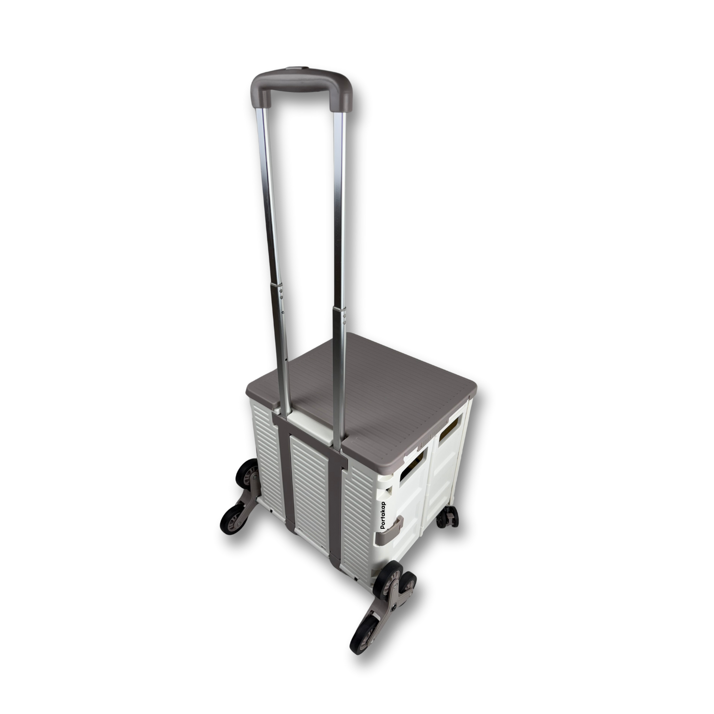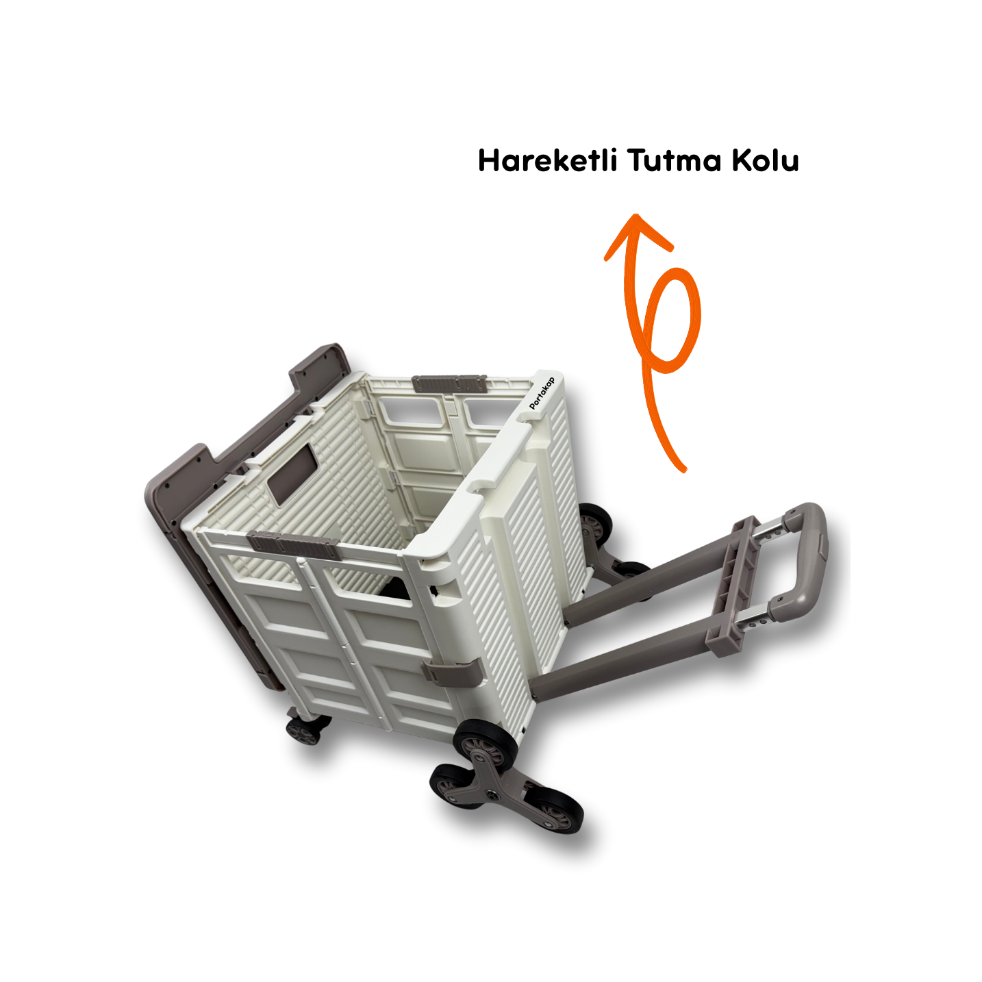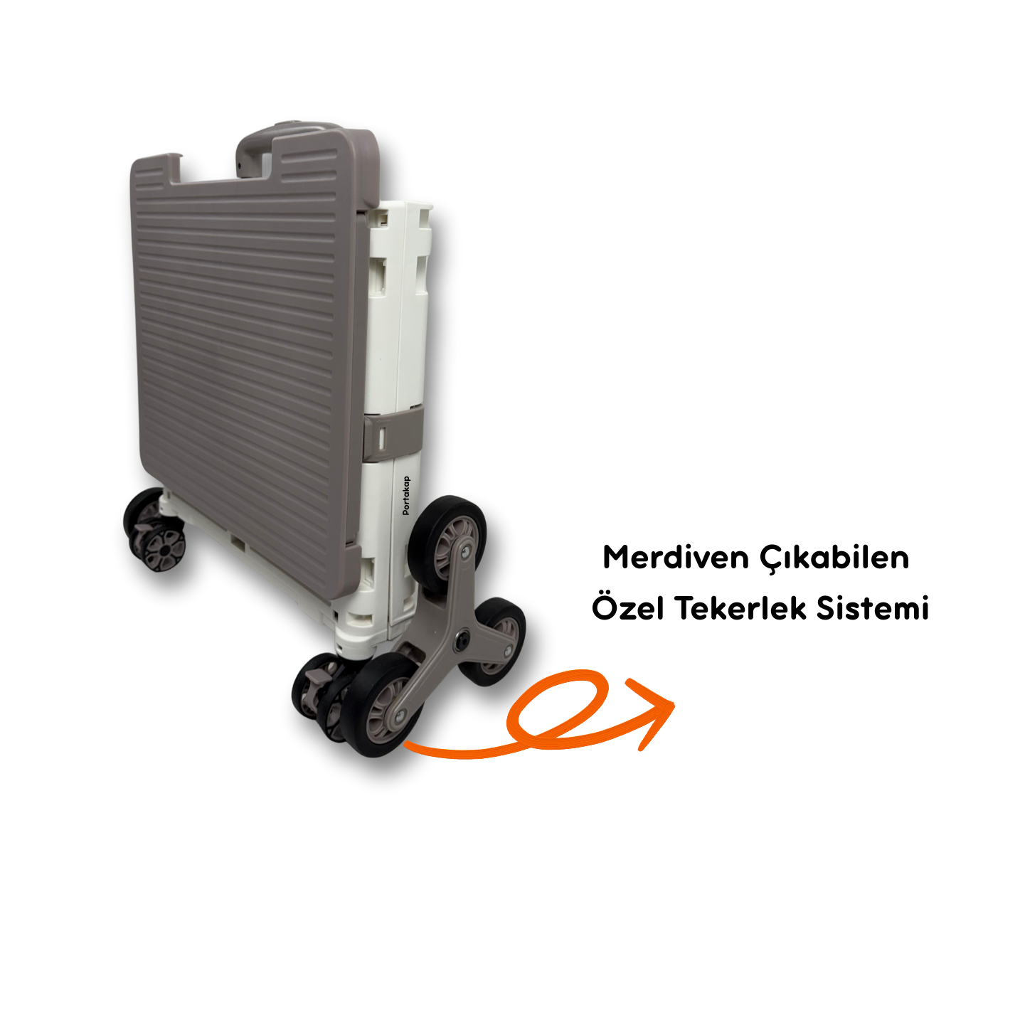 Portakap Piknik Masalı, 8 Tekerlekli, 55 Litre Beyaz ve Kahverengi Katlanır Alışveriş Arabası - Merdiven Çıkan