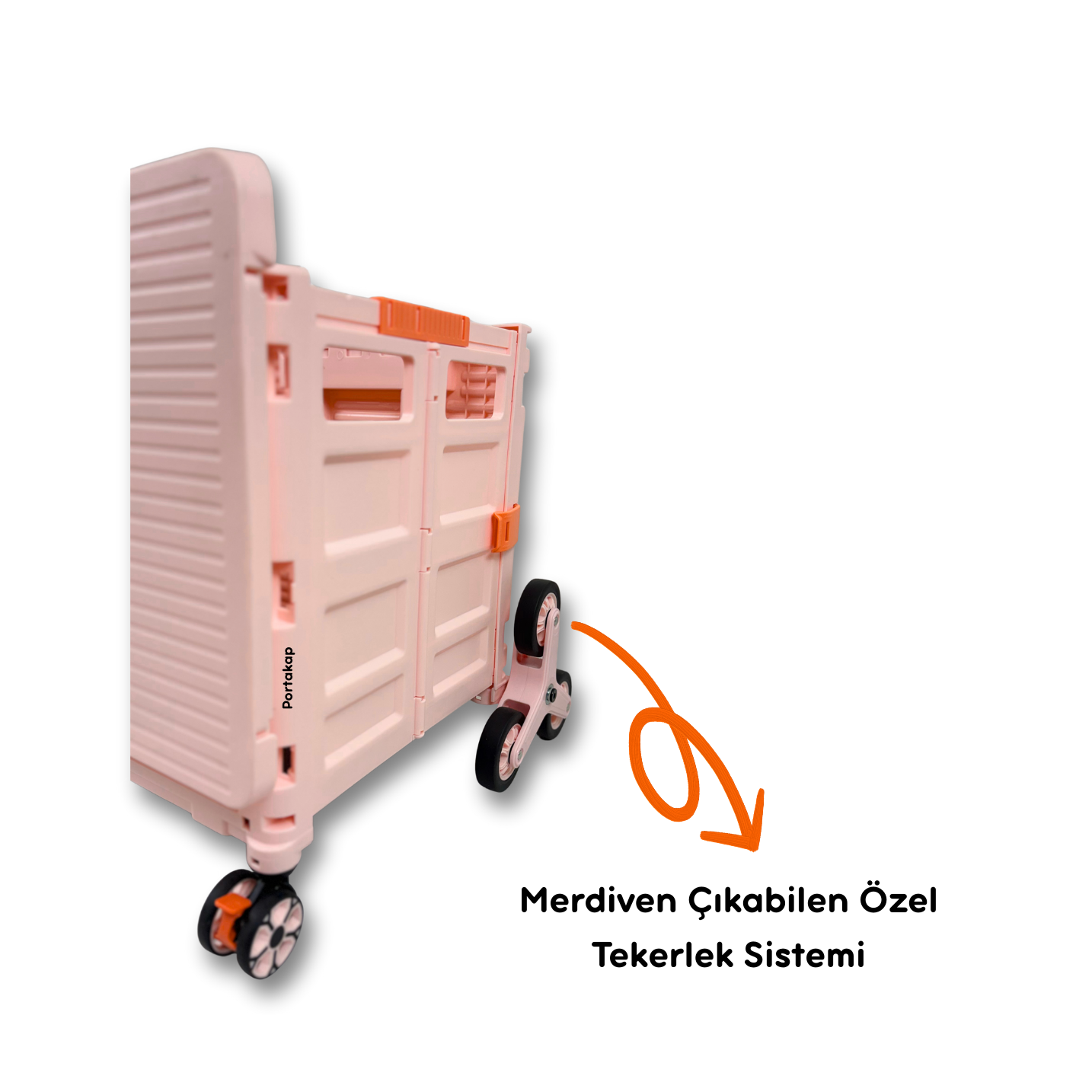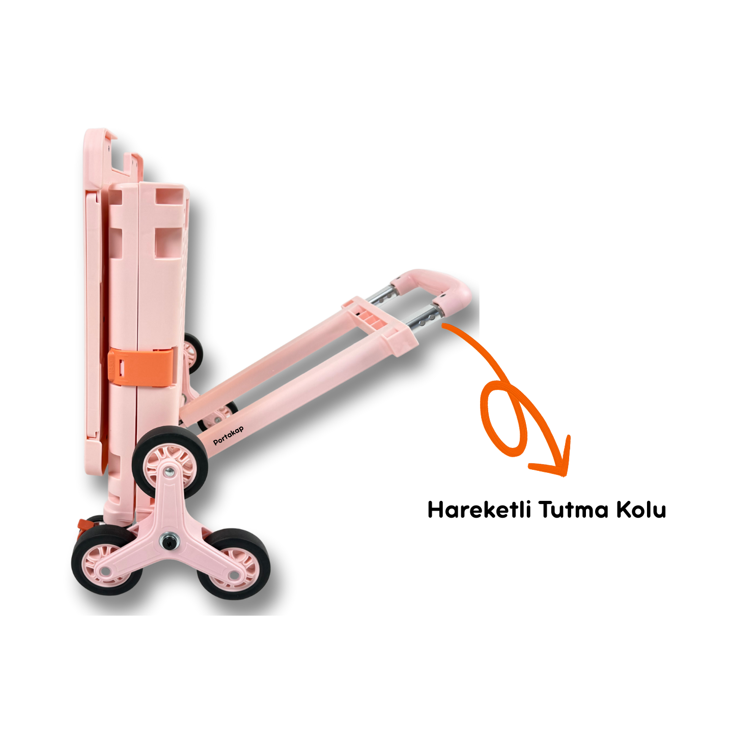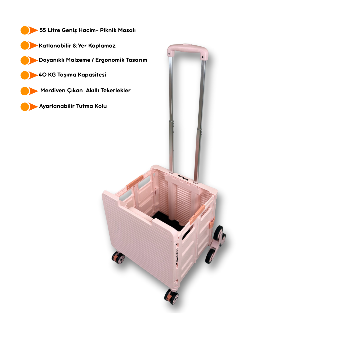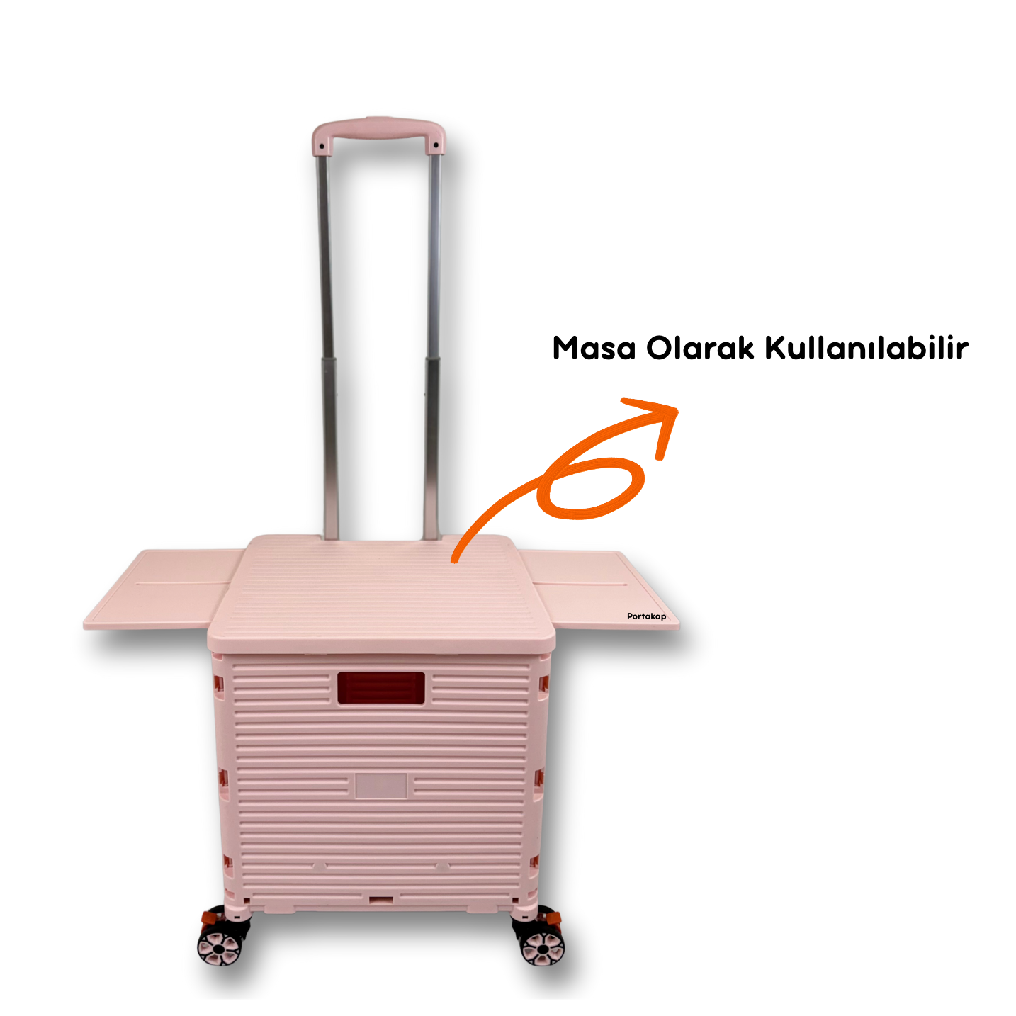 Portakap Piknik Masalı Alışveriş Arabası, pembe rengi, 8 tekerlekli merdiven çıkan tasarımı ve piknik masası olarak kullanılabilen üst tablası ile hem pratik hem şık bir taşıma çözümüdür.