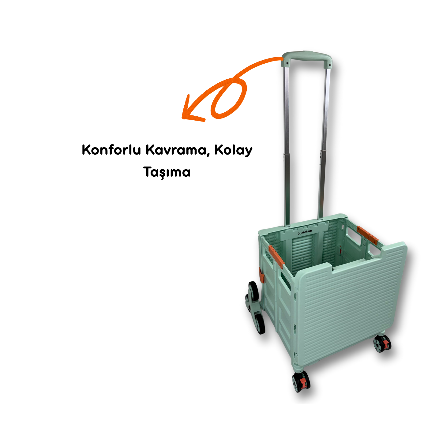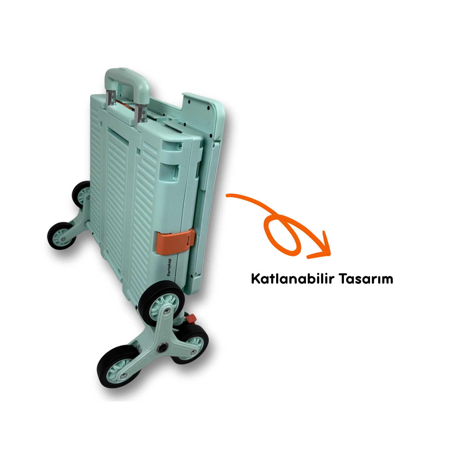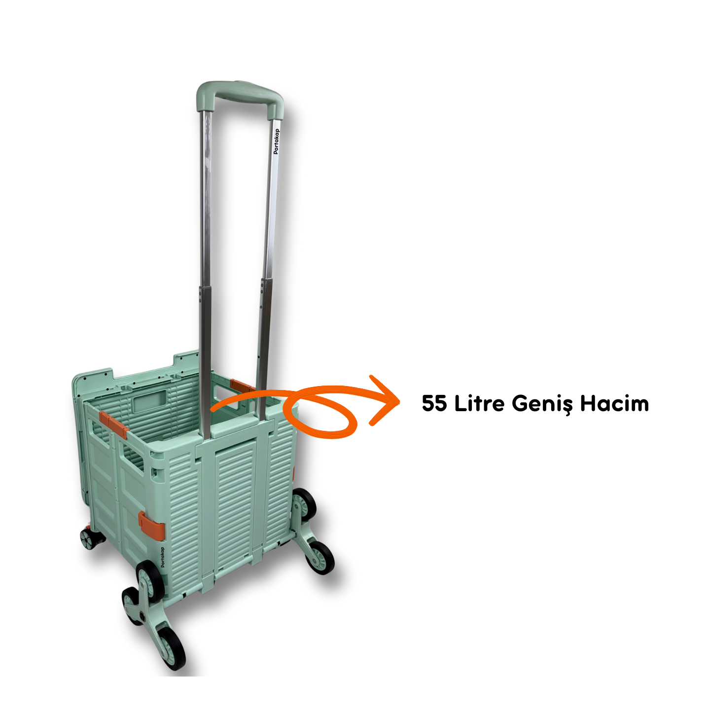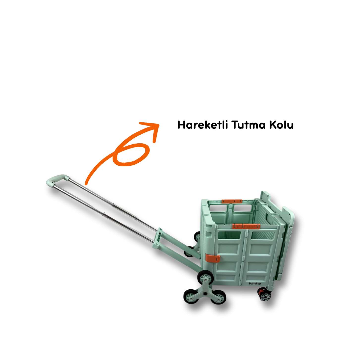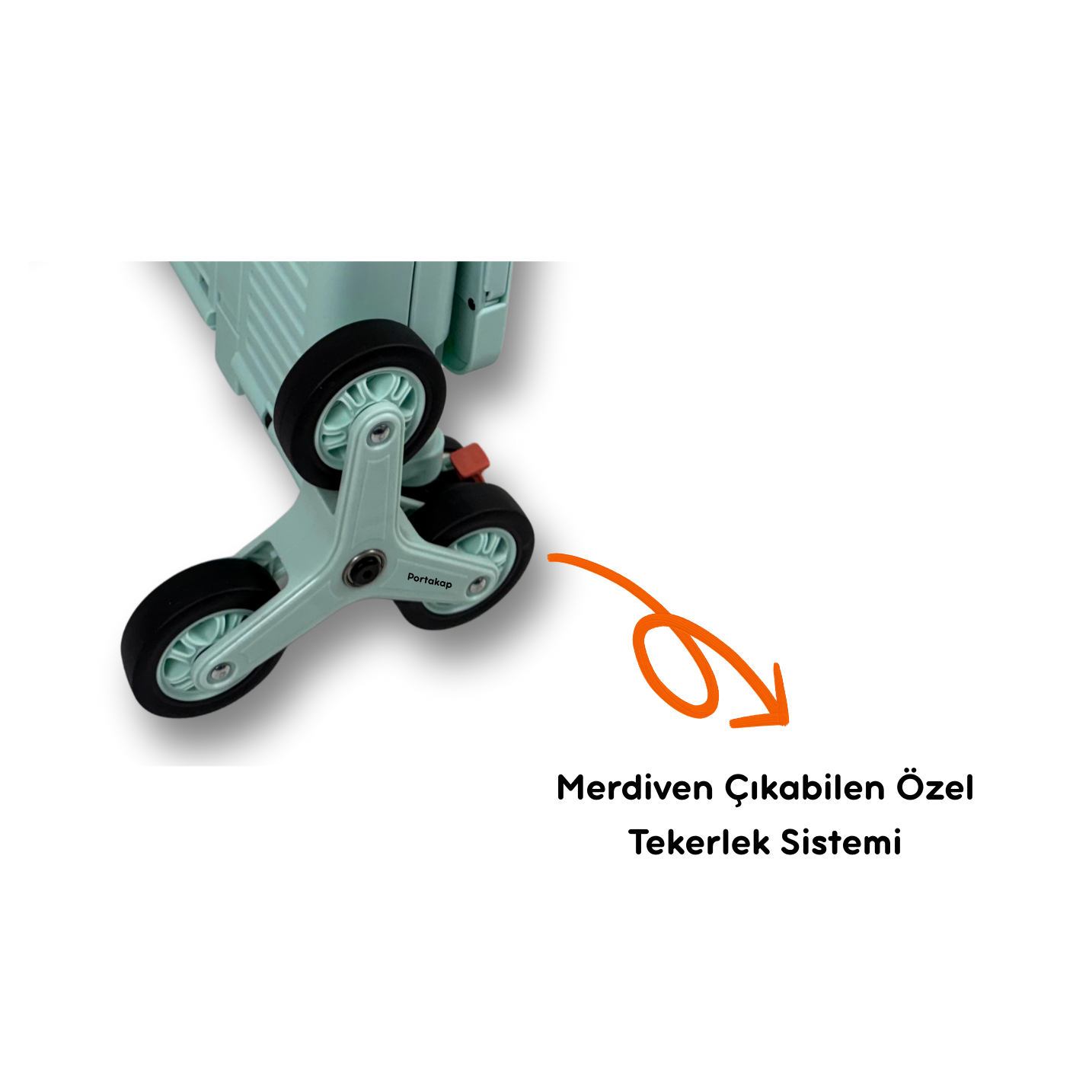 Portakap Piknik Masalı, 8 Tekerlekli, 55 Litre Yeşil Katlanır Alışveriş Arabası - Merdiven Çıkan