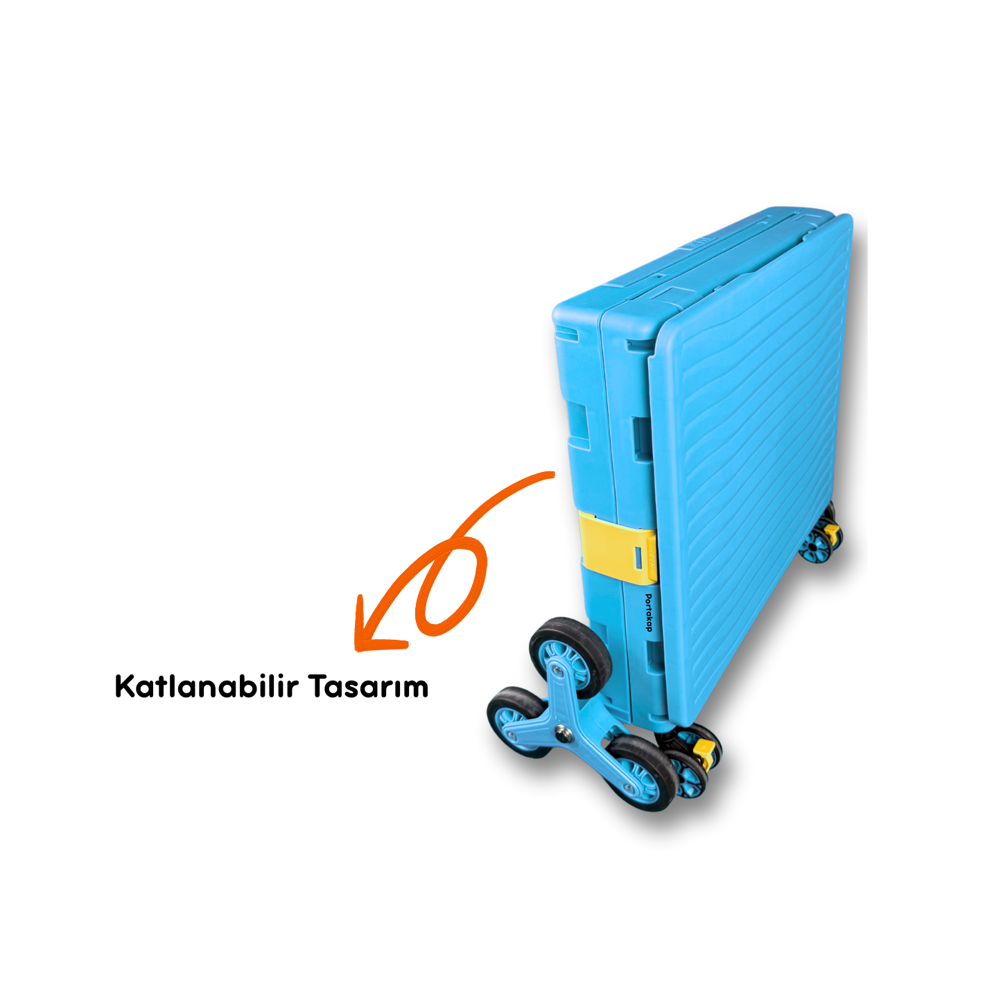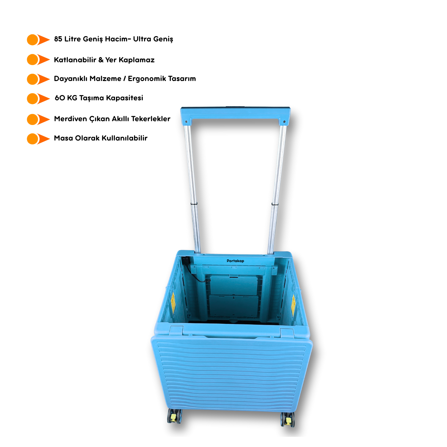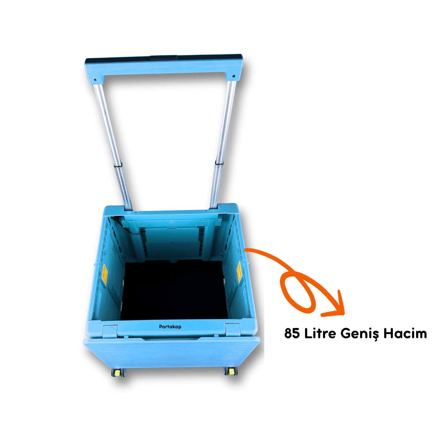 Portakap Ultra Geniş, 8 Tekerlekli, 85 Lt Mavi Katlanır Alışveriş Arabası - Merdiven Çıkan, USB Port Girişli ve Bardak Tutuculu