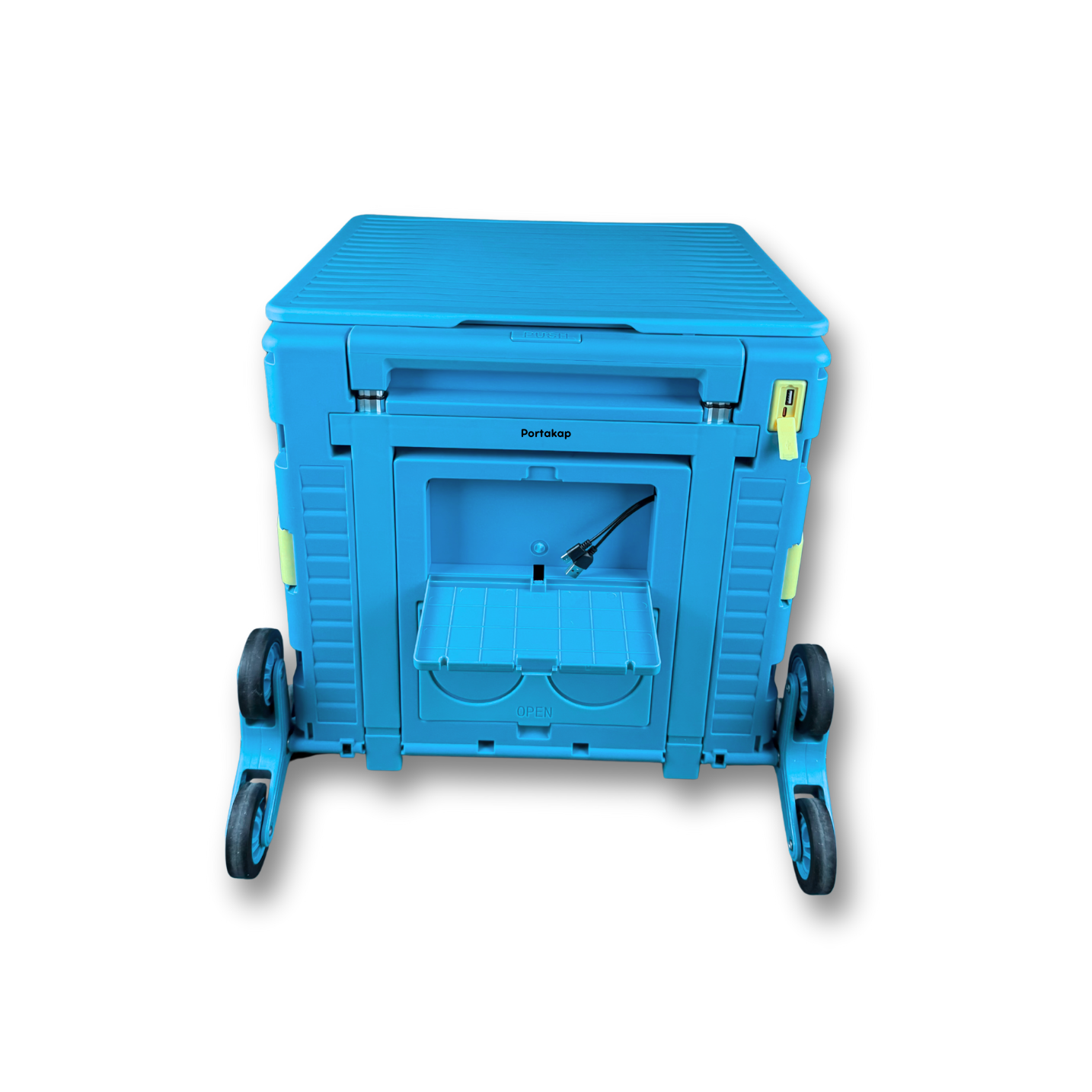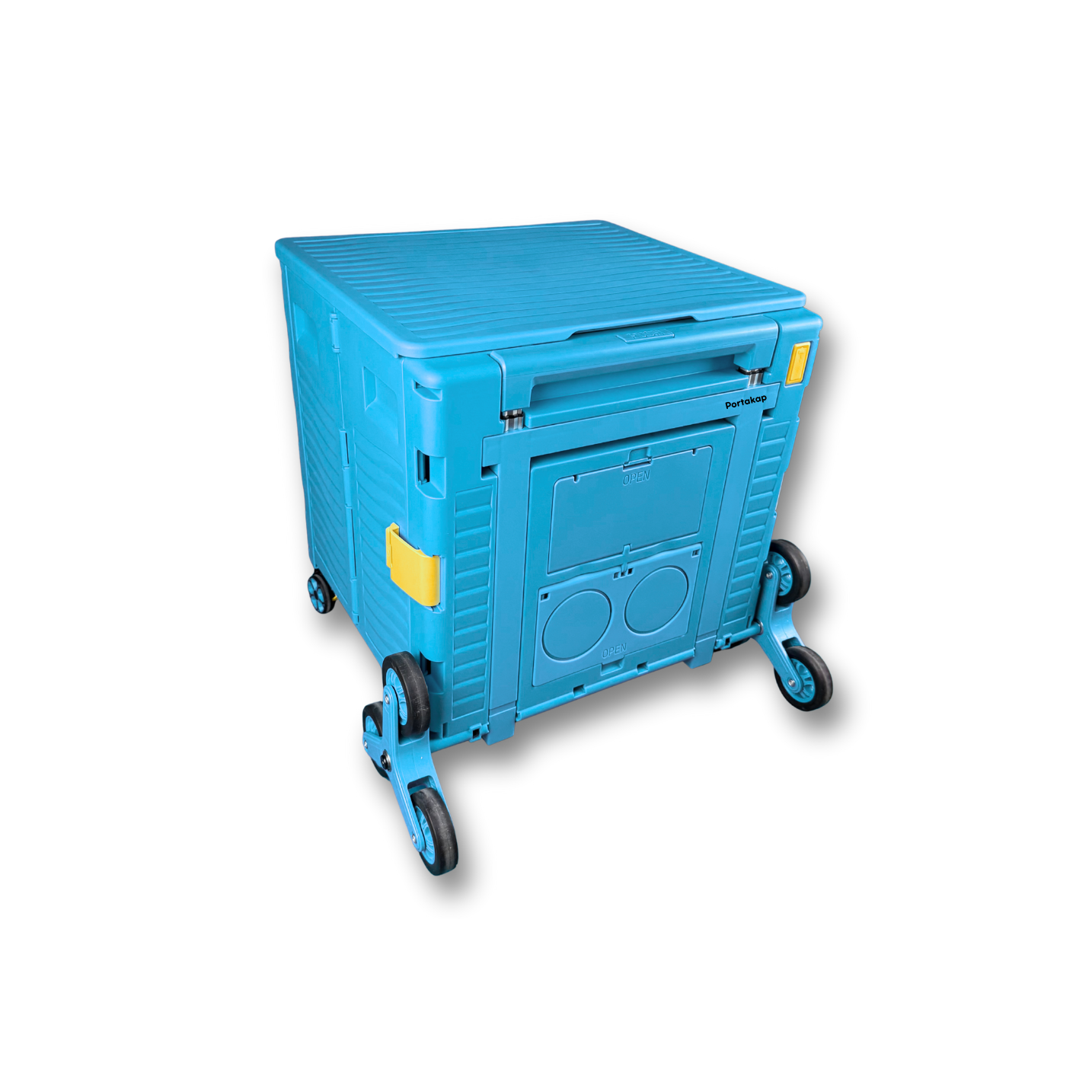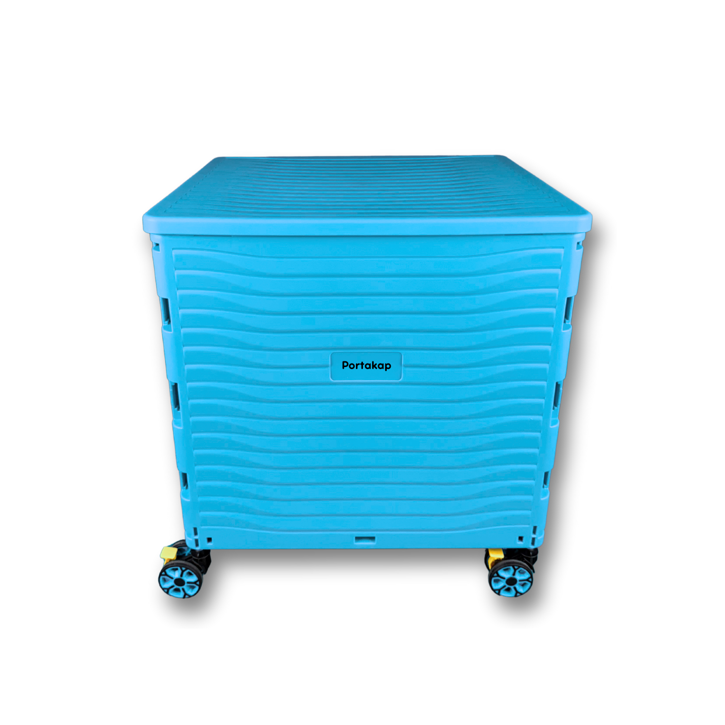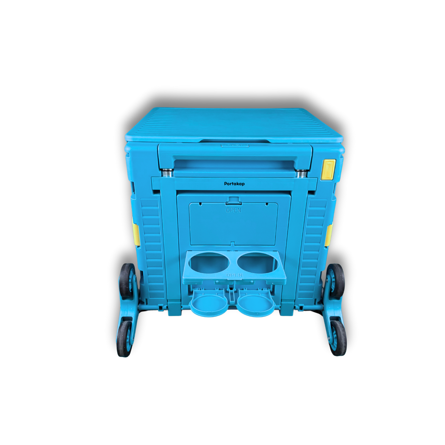 Portakap Ultra Geniş, 8 Tekerlekli, 85 Lt Mavi Katlanır Alışveriş Arabası - Merdiven Çıkan, USB Port Girişli ve Bardak Tutuculu