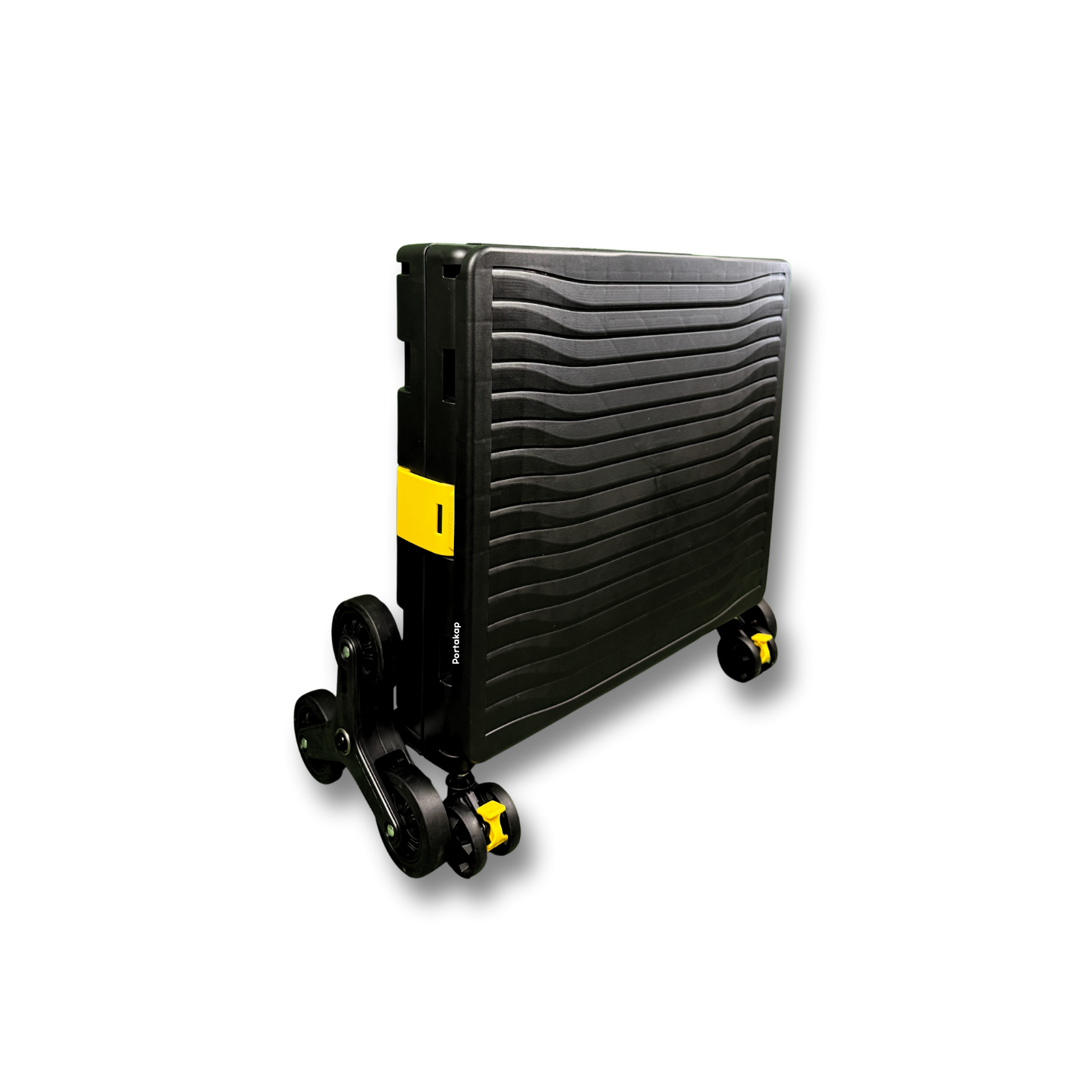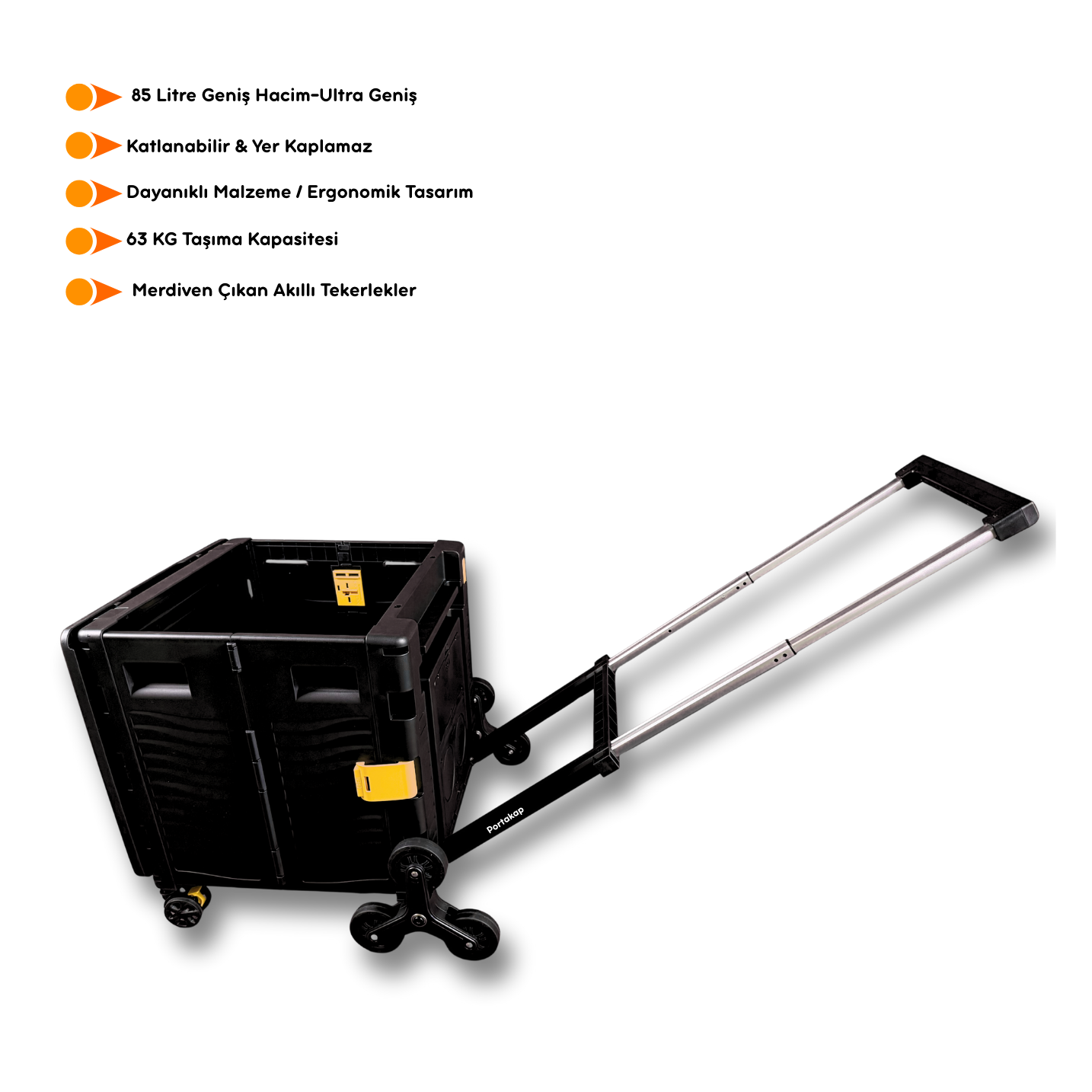 Portakap Ultra Geniş, 8 Tekerlekli, 85 Lt Siyah Katlanır Alışveriş Arabası - Merdiven Çıkan, USB Port Girişli ve Bardak Tutuculu